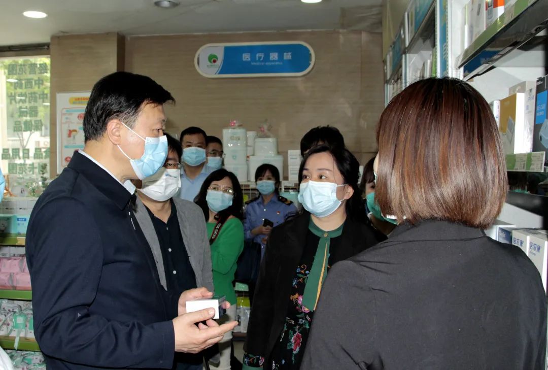 为贯彻落实全省疫情防控工作会议精神,强化“五一”期间药品质量安全监管,保障公众用药安全,4月27日,省药监局党组书记、局长应宏锋带领相关处室,联合省卫生健康委及西安市市场监管局(药监分局)组成的督查检查组,前往西安市部分药品流通使用单位督导检查。西安市市场监管局(药监分局)副局长丁景玺,灞桥区区长苏晓梅等相关部门负责同志一同检查。