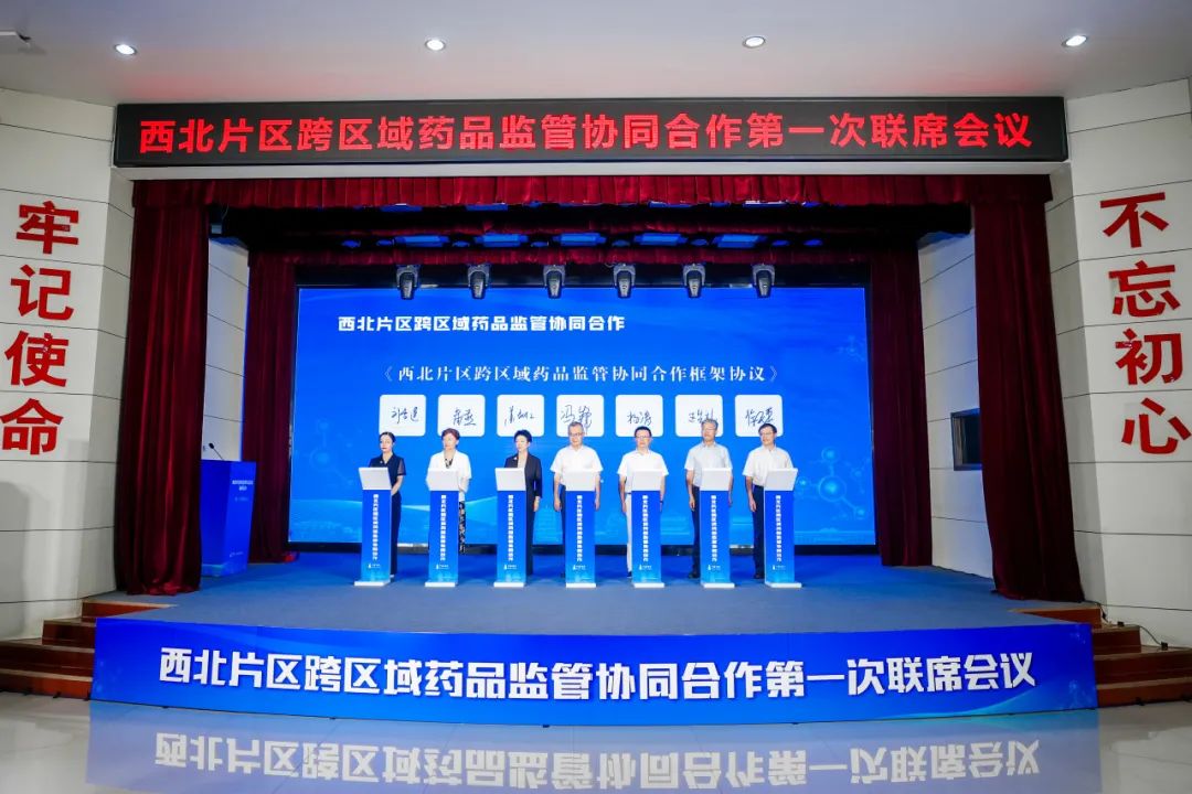 8月8日,西北片区跨区域药品监管协同合作第一次联席会议在陕西西安召开,并签署“西北片区跨区域药品监管协同合作框架协议”。国家药品监督管理局政策法规司司长邱琼出席会议并讲话。陕西省药监局党组书记、局长冯锋致辞。陕西省药监局党组成员、副局长宋健主持。甘肃省药监局党组成员、副局长杨涛,青海省药监局党组书记、局长苏磊红,宁夏回族自治区药监局党组书记、局长王生礼,新疆维吾尔自治区药监局党组书记、局长崔燕,内蒙古自治区药监局党组书记、局长徐天平,新疆生产建设兵团药监局党组成员、副局长刘雪莲及各单位相关负责同志参加会议,并进行交流发言。