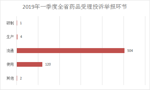 2019年一季度,全省药品受理各类投诉举报621件,占全省受理“两品一械”投诉举报总数的67.6%。药品受理投诉举报最多的环节在流通和使用,分别为流通环节受理504件,使用环节受理120件。全省药品投诉举报办理情况:立案52件,结案70件,移交司法机关7件。