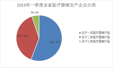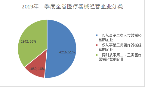 2019年一季度,全省共有二、三类医疗器械经营企业8197家,其中,仅经营二类医疗器械产品的企业4216家,仅经营三类医疗器械产品的企业1039家,同时从事二、三类医疗器械经营企业2942家。