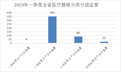 2019年一季度,全省实有医疗器械生产企业1012家。重点监管企业11家,其中,国家重点监管企业22家,省重点监管企业88家。