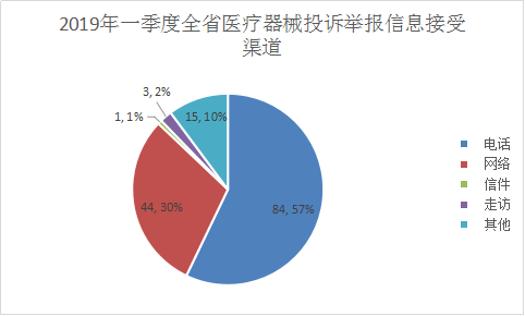 2019年一季度末,全省医疗器械接受各类投诉举报信息共147件,占全省接受投诉举报信息总数的12.4%。