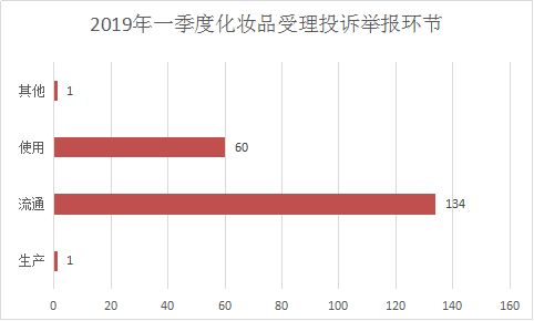 2019年一季度,全省化妆品受理各类投诉举报191件,占全省受理投诉举报总数的20.8%。一季度,化妆品受理投诉举报最多的环节在流通和使用,分别为流通环节受理134件,使用环节受理60件。一季度,全省化妆品投诉举报办理情况:立案1件,结案4件,移送其他部门1件。